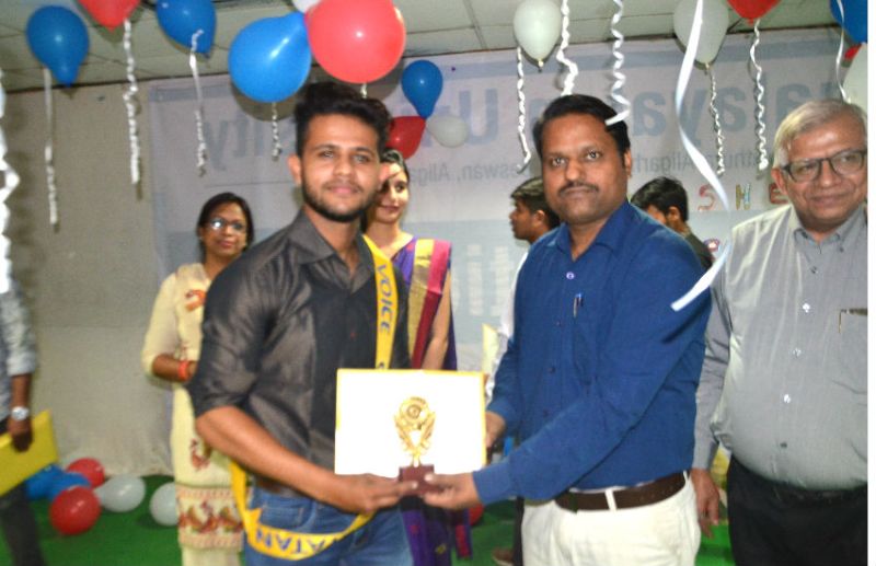 अलीगढ़। मंगलायतन विश्वविद्यालय के छात्र संघ ने गायन प्रतियोगिता का आयोजन किया। फाइनल राउंड में मैकेनिकल इंजीनियरिंग के छात्र सावन तिवारी को वॉयस ऑफ मंगलायतन विश्वविद्यालय चुना गया। इन्होंने एक मैशप गीत गाया था। लाल इश्क.. गीत गाकर अस्मिता जैन ने दूसरा स्थान तो गुलाबी आंखें.. गीत पर वाहवाही बटोरते हुए आशीष कुशवाह ने तीसरा स्थान प्राप्त किया।