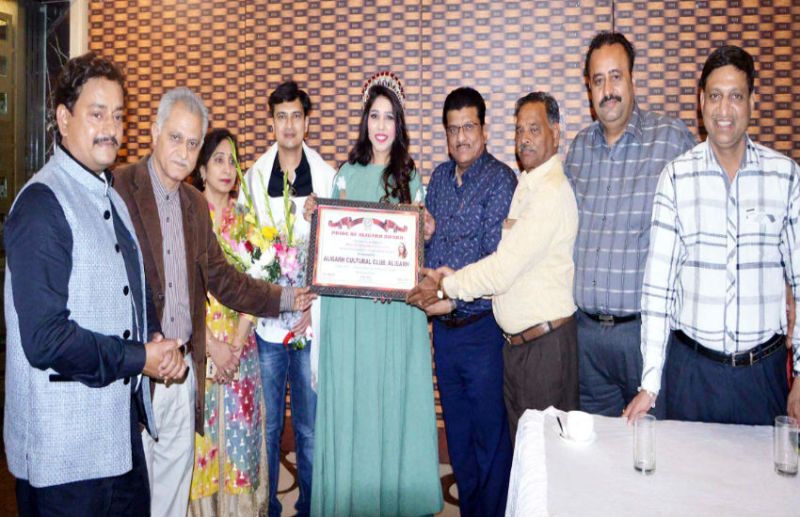 तस्वीरः मिस सिंगापुर कृति अग्रवाल को प्राइड ऑफ अलीगढ़ अवॉर्ड देते अलीगढ़ कल्चरल क्लब के प्रवीन अग्रवाल, जॉनी फॉस्टर, पंकज धीरज आदि।