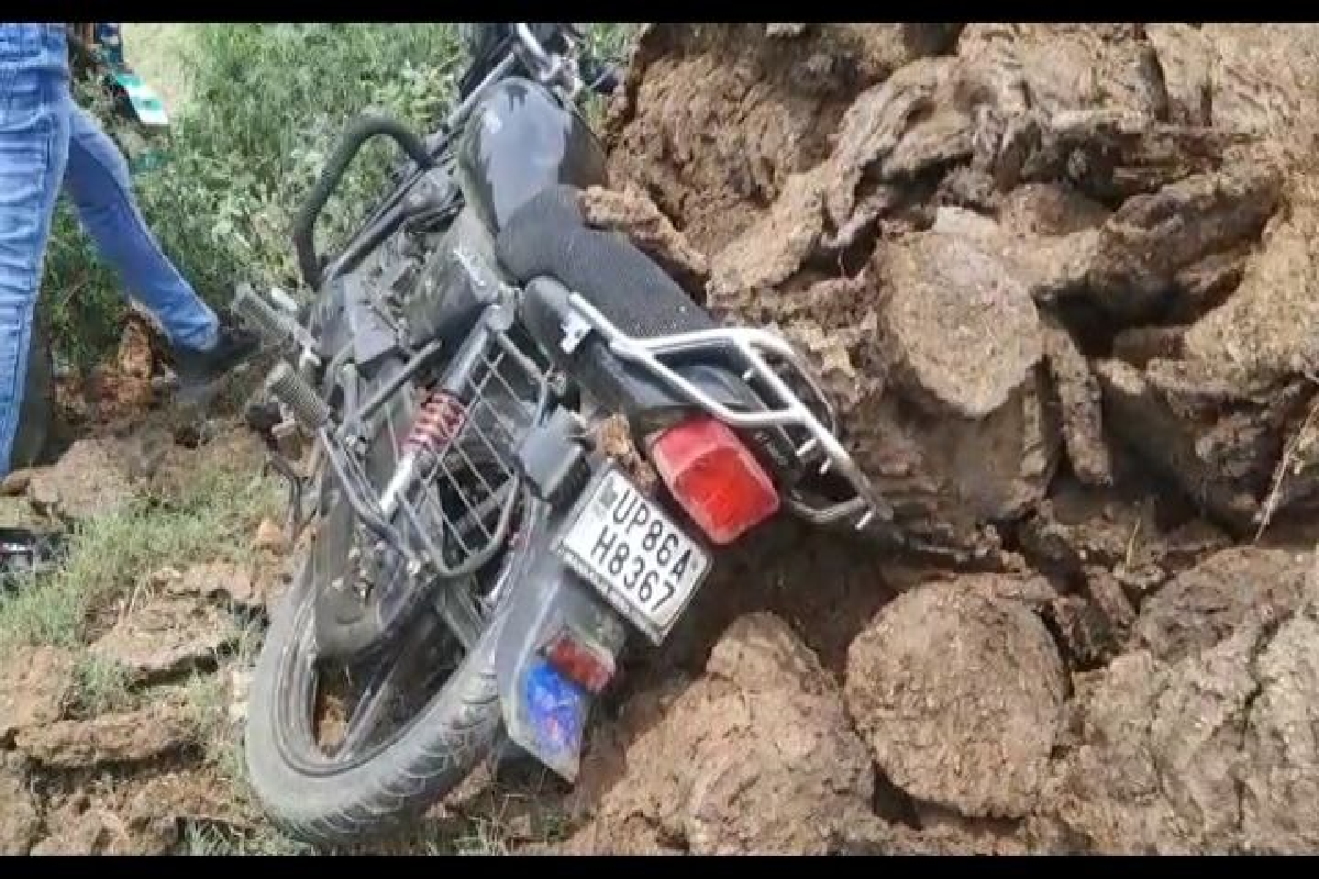 दुर्घटना में क्षतिग्रस्त मोटरसाइकिल