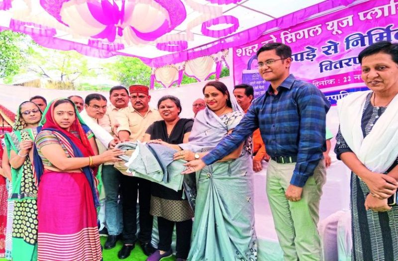 जिला कांग्रेस अध्यक्ष महेश पटेल ने कहा कि नगर को सिंगल यूज प्लास्टिक से मुक्त करते हुए नगर को साफ और स्वच्छ बनाने के लिए सभी नागरिक आगे आए। उन्होंने सिंगल यूज प्लास्टिक से उत्पन्न होने वाली समस्याओं, गाय और अन्य पशुओं को होने वाले नुकसान के बारे में बताया। उन्होंने नगर पालिका परिषद की कपड़ा थैली वितरण की पहल की सराहना करते हुए आमजन से कपड़ा थैली का उपयोग करने का आह्वान किया। उन्होंने कहा सभी मिलकर संकल्प लें कि कपड़ा थैली का ही उपयोग करेंगे। नगर पालिका उपाध्यक्ष मकू परवाल ने भी अपने विचार व्यक्त किए। संचालन जितेन्द्र तंवर ने किया। आभार नगरीय आजीविका मिशन के साहू ने माना।