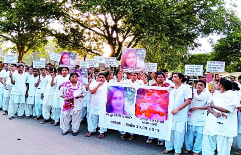 रैली, सौंपा ज्ञापन-मंगलवार को नर्सों ने मौन रैली निकालकर कलेक्टर को ज्ञापन सौंपा। ज्ञापन में कहा सीएमएचओ एवं सिविल सर्जन डॉ. ढोके व केशियर पंवार द्वारा समस्त स्टॉफ नर्सों को धमकाया जाता है व अश्लील हरकत की जाती है। स्टॉफ नर्स निधी फरकारे के उपचार में डॉ. धोके द्वारा व्यक्तिगत तौर पर लापरवाही बरती गई जिससे उसकी मृत्यु हुई। इसलिए उन पर आपराधिक केस दर्ज किया जाए।