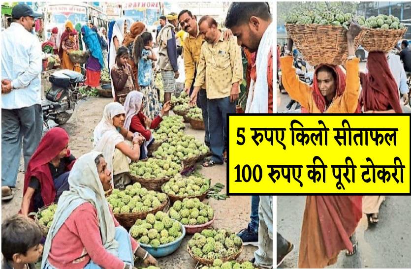 5 रुपए किलो मिल रहा सीताफल, 100 रुपए में ले जाएं पूरी टोकरी