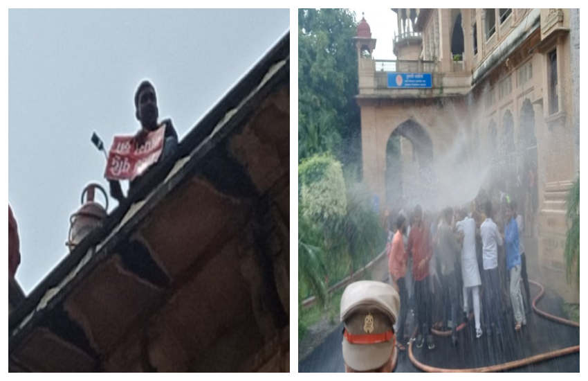 सिलेंडर लेकर कुलपति कार्यालय पर चढ़ा छात्र