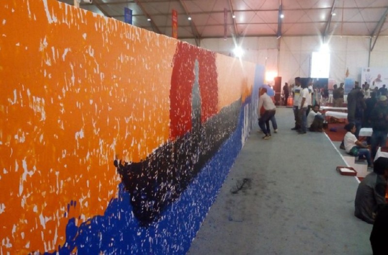 प्रयागराज. दिव्य-भव्य कुंभ मेले के सफल आयोजन और विश्व स्तरीय व्यवस्था के बाद अब मेला प्रशासन विश्व रिकॉर्ड बनाने में जुटा है। कुंभ मेला क्षेत्र के सेक्टर 1 में हजारों की संख्या में 8 घण्टे तक लगातार छात्र-छात्राएं और आम नागरिको ने पेंटिंग वॉल पर अपने हाथों के रंग बिरंगे छाप से जय गंगे थीम की पेंटिंग बनाई।