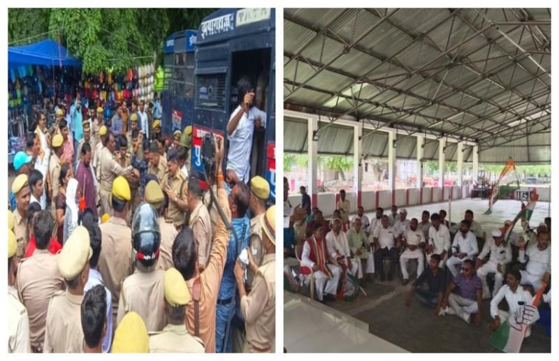 शुक्रवार को अचानक सड़कों पर उतरे कांग्रेसी नेताओं द्वारा सड़क पर भीड़ एकत्रित होने लगी। देखते ही देखते भारी जाम लग गया। प्रदर्शन कर रहे नेताओं को पुलिस ने हिरासत में लेकर पुलिस लाइन ले गए। कांग्रेस पार्टी के प्रदेश महामंत्री मुकुंद तिवारी ने कहा कि केंद्र व प्रदेश सरकार तानाशाही रवैया अपनाकर गरीब, पिछड़े तथा किसानों के अधिकारों का दमन कर रही है। इसके साथ ही पूंजीपतियों को लाभ देने का काम कर रही है। वर्तमान सरकार में गरीब जनता परेशान है। आगे कहा कि लाठी व गोली का मुकाबला करने के लिए आगे भी प्रदर्शन किया जाएगा।