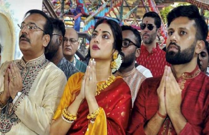 दुर्गा पूजा में शामिल हुई टीएमसी सांसद नुसरत जहाँ को लेकर हिन्दू धर्म गुरु का बड़ा बयान ,कहा ये मुल्ला.....