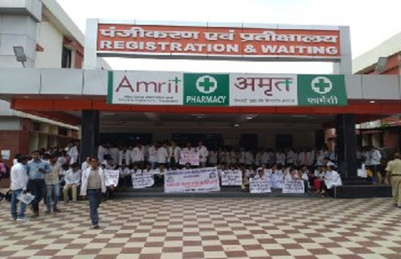 - एनएमसी बिल के खिलाफ जूनियर डॉक्टरों का प्रदर्शन -मोती लाल नेहरू अस्पताल में ओपीडी सेवाएं ठप - सरकार से बिल वापस लेने की मांग