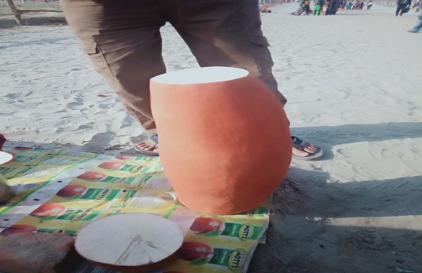 भगवान श्रीराम को 14 साल का वनवास मिला था। इस दौरान वह वन में रहे थे। वनवास के दौरान प्रभु श्रीराम कंदमूल खाते थे। कुंभ में इसी फल को बेचा जा रहा है। बेचने वालों का दावा है कि चित्रकुट के घने जंगल से यह खास फल लाते हैं। जमीन के अंदर यह छिपा रहता है जिसे बेहद सावधानी से निकाला जाता है। इस फल की कीमत 600 रुपया किलो होती है। खाने में इस फल का स्वाद अलग तरह का होता है। एक फल कई किलो का हो सकता है।