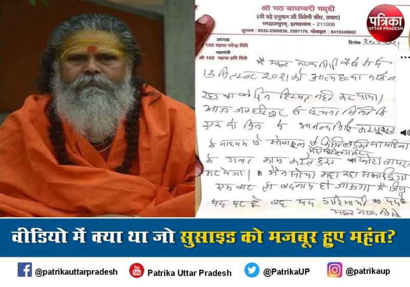 प्रयागराज अल्लापुर स्थित बाघम्भरी मठ के एक कमरे में 20 सितंबर को महंत नरेंद्र गिरि का पंखे से लटकता शव मिला था। लाश के पास से एक सुइसाइड नोट भी बरामद हुआ था। सुसाइड नोट के मुताबिक, महंत नरेंद्र गिरि ने अपने शिष्य आनंद गिरि पर कई गंभीर आरोप लगाए थे। मामले में पुलिस ने आनंद गिरि को हरिद्वार से गिरफ्तार किया था। मामले की जांच सीबीआई कर रही है।