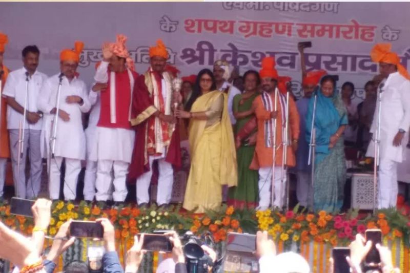 प्रयागराज मेयर ने सिर पर कलश रखकर ली शपथ