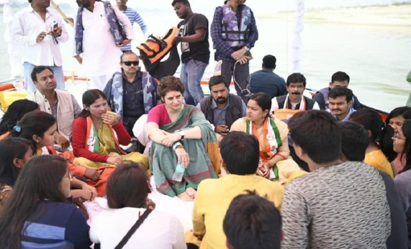 प्रयागराज. कांग्रेस की महासचिव प्रियंका गांधी ने सोमवार को प्रयागराज से अपने तीन दिवसीय जल यात्रा की शुरूआत की। मेजा विधानसभा के सिरसा गांव में घाट पर जुटे हजारों लोगों के साथ कांग्रेस के नेताओं ने प्रियंका का जोरदार स्वागत किया। उत्साहित कार्यकर्ताओं ने खूब जोर-शोर से प्रियंका गांधी जिंदाबाद के नारे लगाए। य़हां जनता को संबोधित करते हुए प्रियंका ने मौजूदा सरकार पर जमकर हमला बोला। उन्होने कहा कि आज भारत देश खतरे में है। इस देश को चलाने वाले छह-सात लोग हैं। जो पूरे सिस्टम को अपने हाथों में लेकर बैठे हैं। जनता को जागरूक होने की अपील करते हए उन्होने कहा कि आपको अपने अधिकार के लिए आगे आना होगा और विकास के लिए इन नेताओं को मंच से नीचे लाना होगा।