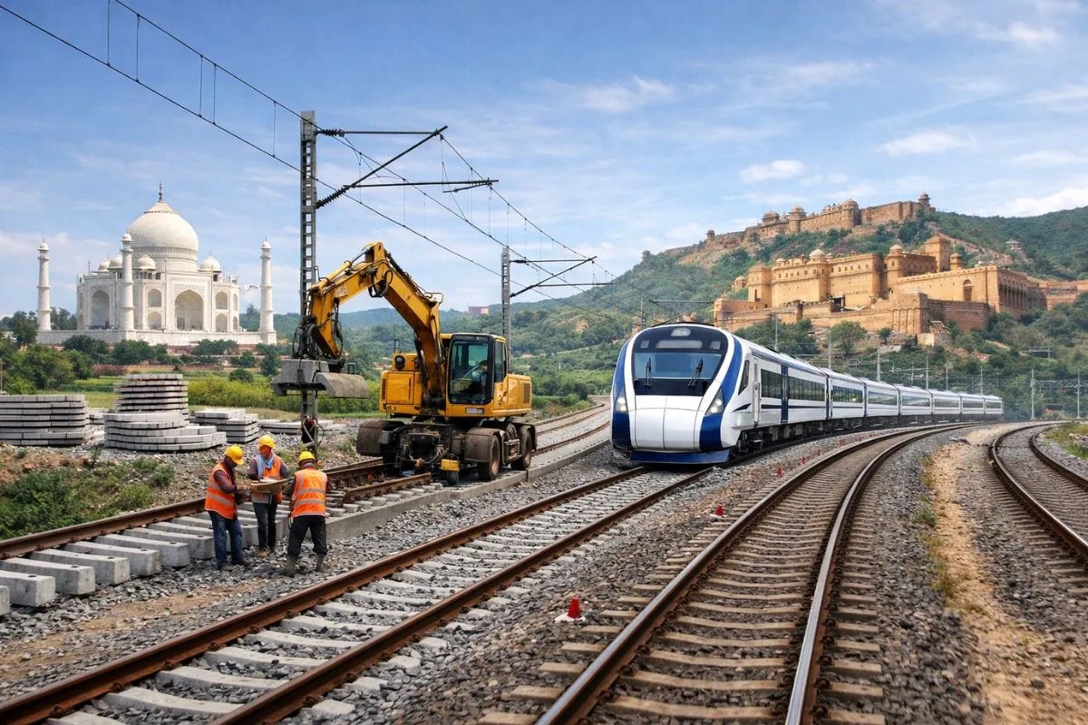 खेरली (अलवर)। आगरा-जयपुर रेलमार्ग पर भरतपुर से बांदीकुई के बीच दोहरीकरण कार्य तेजी से आगे चल रहा है। यह परियोजना राजस्थान और उत्तर प्रदेश के रेल नेटवर्क को मजबूत करेगी। भरतपुर-बांदीकुई सेक्शन पर दूसरी रेल लाइन बिछाने का कार्य कई स्थानों पर तेज गति से चल रहा है।