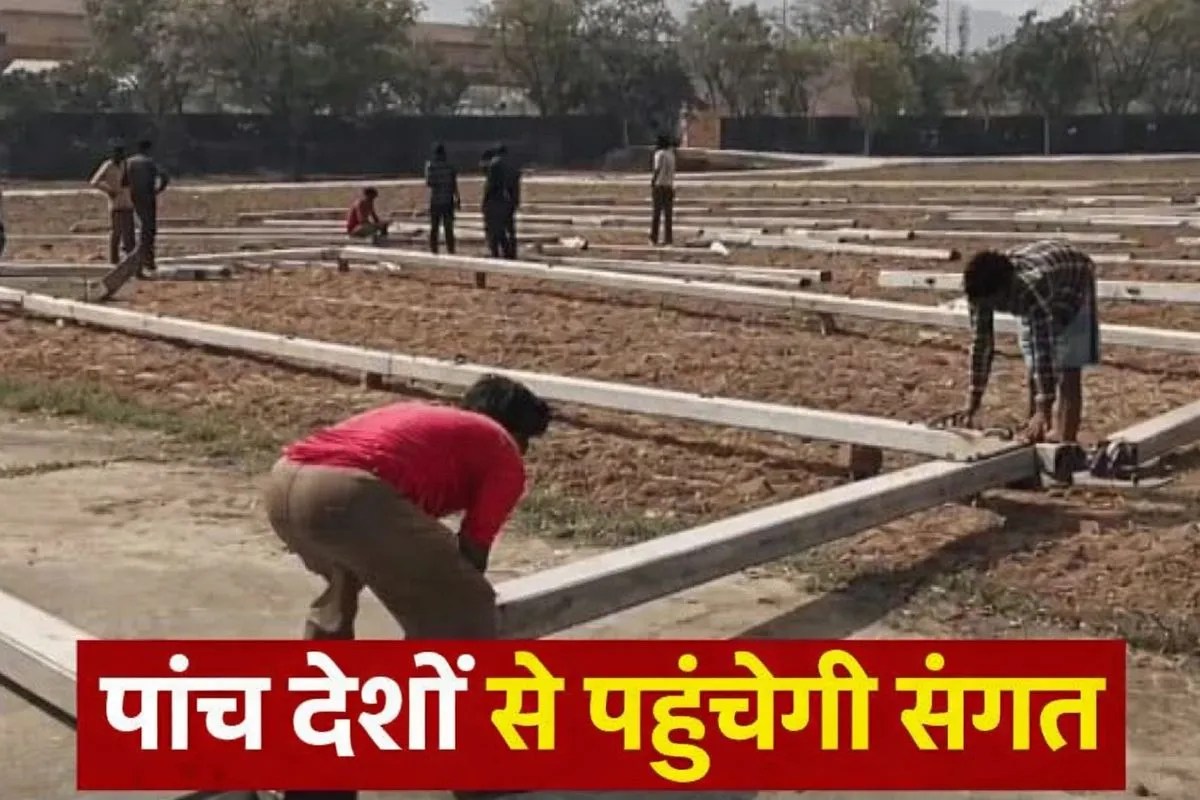 गुरुद्वारा में वाटरप्रूफ पांडाल लगते हुए (फोटो - पत्रिका)