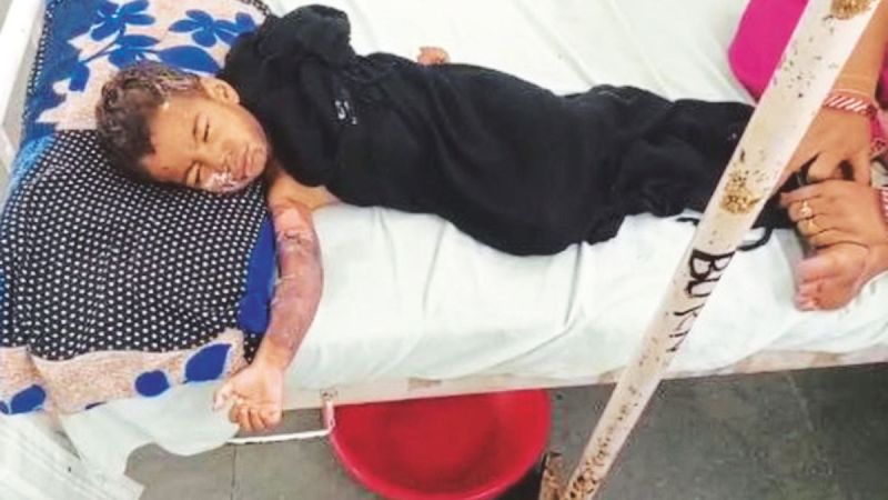 बर्न वार्ड में भर्ती वंदिका (फोटो: पत्रिका)