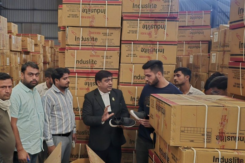 उसके नाम से खैरथल-तिजारा जिले में एक फैक्ट्री में नकली शूज बनाकर मार्केट में सप्लाई किया जा रहे हैं। जिस पर द्वारका कोर्ट ने कार्रवाई के आदेश देते हुए एडवोकेट संजय मलिक को मौका कमिश्नर नियुक्त किया। कंपनी के प्रतिनिधि संजय शर्मा, एडवोकेट गौतम वसीन और एडवोकेट वरुण खन्ना सोमवार शाम मोगा कमिश्नर और अपनी टीम के साथ खैरथल के रीको एरिया स्थित इंडस फाइन आर्ट्स प्राइवेट लिमिटेड फैक्ट्री पर पहुंची।