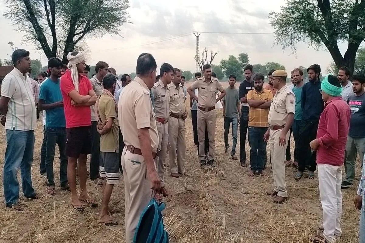 घटनास्थल पर पुलिस व ग्रामीण (फोटो - पत्रिका)