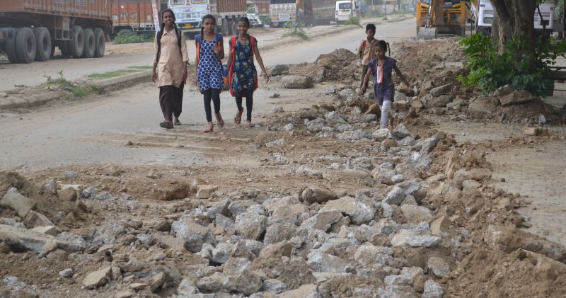 सड़कें धंसी पड़ी, रोड़े बीचों बीच मिले