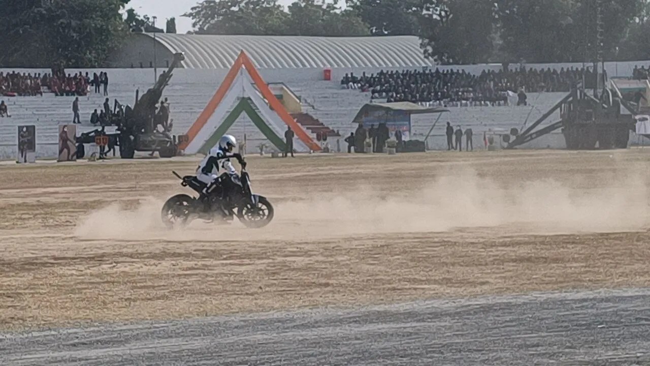 अलवर के इंदिरा गांधी स्टेडियम में दो दिवसीय नो योर आर्मी प्रदर्शनी कार्यक्रम आयोजित किया जा रहा है। दूसरे दिन बुधवार को आर्मी के जवानों ने मोटरसाइकिल पर हैरतअंगेज स्टंट दिखाए। इसके अलावा प्रदर्शनी में सेना के अत्याधुनिक हथियारों का प्रदर्शन किया गया।