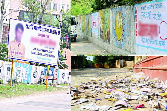 प्रदेश की तरह अलवर जिले में भी संभावित छात्रसंघ प्रत्याशियों ने प्रचार प्रसार शुरू कर दिया है। खासकर सोशल मीडिया के जरिए। इसके अलावा शहरों में पोस्टर व हॉर्डिंग्स लगाने शुरू हो गए हैं। कॉलेजों के मुख्य द्वार पोस्टर से अटने लग गए हैं। हाल में सभी कॉलेजों ने एक-दो बार पोस्टर हटवाए भी हैं। लेकिन फिर से पोस्टर व दीवारों पर पेंटिंग के जरिए प्रचार जमकर होने लगा है।
