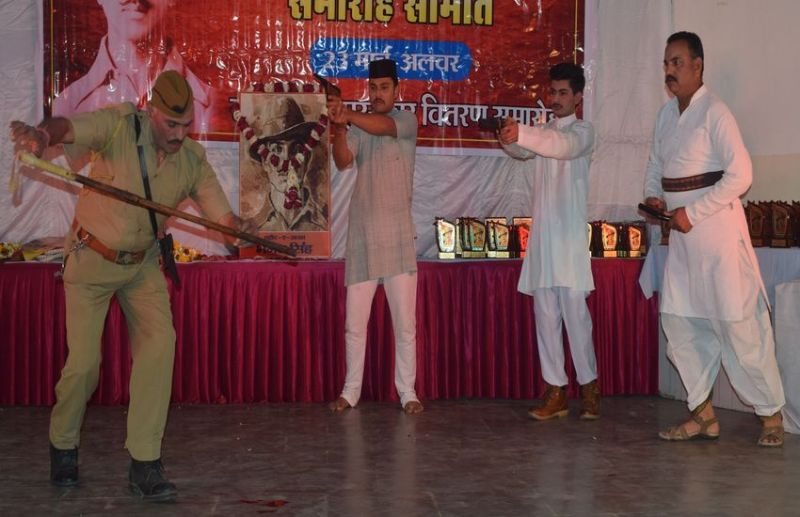 शिक्षाविद् रामावतार पंडित की ओर से लिखित व निर्देशित इस नाटक में सभी कलाकारों ने मंझा हुआ अभिनय किया जिसे खूब सराहा गया। भगत सिंह के जोशीले संवाद सुनकर दर्शकों ने कई बार भारत माता की जय का जयघोष किया। इसमें भगत सिंह के बालपन का रोल युवराज शर्मा और युवा अवस्था का रोल पियूष ग्रोवर ने किया। इसमें सुखदेव देवेश गौड़ व राजगुरू हितेश ठाकुर बने।