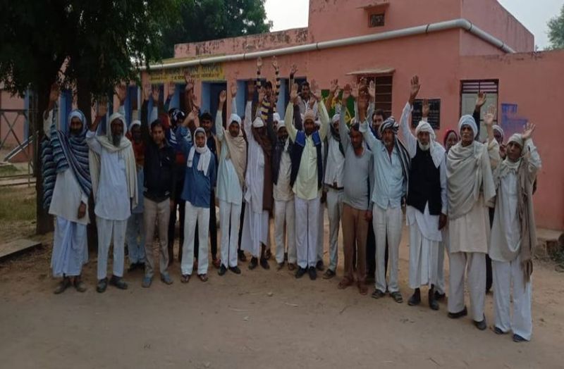 अलवर. खैरथल क्षेत्र के किरवारी गांव को पंचायत मुख्यालय बनाने की मांग को लेकर लिसानी गांव में रोष व्यक्त करते ग्रामीण।