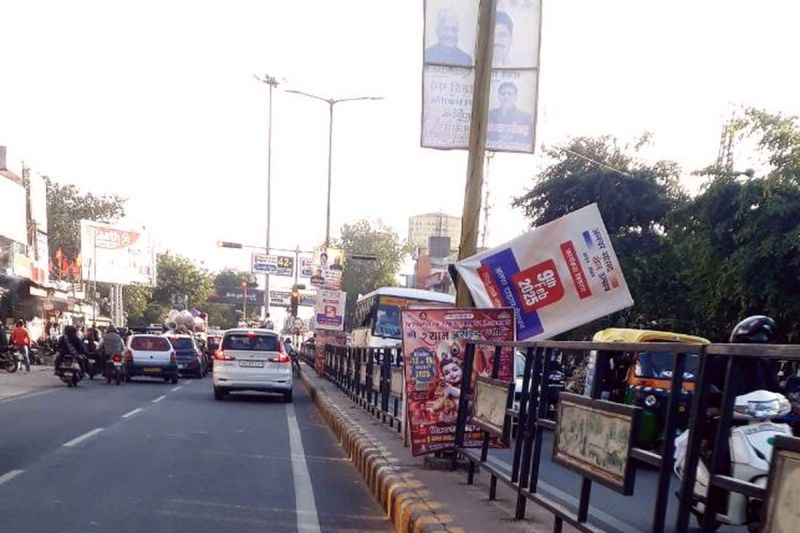 नियमों की अवहेलना: विद्युत पोल पर विज्ञापन बोर्ड व फ्लैक्स लगाना अवैध