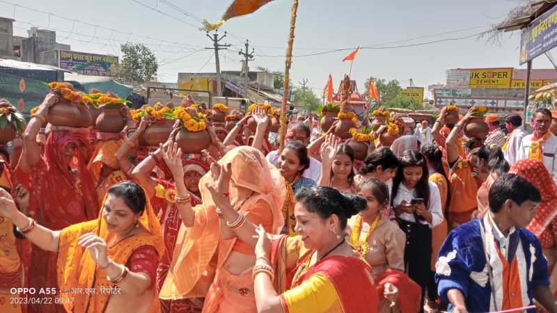 भगवान परशुराम की विधि-विधान से पूजा कर बैंड बाजे तथा डीजे के साथ कस्बे स्थित बालिका स्कूल के पास खेड़ा वाले बालाजी से कलश व शोभायात्रा प्रारंभ की गई। जिसमें कस्बे सहित बिरकडी, पेमावाला, स्यालुता, धीरोडा, गुरुका खेड़ा, नामदरपुरा, दडलपुरा, पावटा, बलदेवगढ़ आदि स्थानों से विप्र बंधुओं ने भाग लिया। कलश व शोभायात्रा कस्बे के बिरकडी रोड, मुख्य स?क मार्ग होते हुए मूर्ति मोहल्ला, साहू, प्रजापत, खटीक, मीणा, ठाकुर व देवरी मोहल्ले से पुराना बाजार, पटेल मोहल्ला से खेड़ा वाले बालाजी मंदिर पहुंचकर सामूहिक आरती के साथ विसर्जित हुई। यात्रा का सभी समाजों ने जगह-जगह ठंडाई, शीतल जल पिलाकर व फूल बरसा कर स्वागत किया। भगवान परशुराम के प्रसाद चढ़ाकर पूजन किया। भव्य दरबार व झांकी सजाई गई। महिलाएं सिर पर कलश लिए चली। नृत्य किया। एक-दूसरे पर गुलाल व पुष्प बरसाएं। खेड़ावाले हनुमान मंदिर पहुंचकर शोभायात्रा का समापन किया। श्रद्धालुओं को प्रसाद वितरण किया। इस अवसर पर महेश जोशी, सत्यनारायण बागोरिया, अवधेश भारद्वाज, गणपत दडंग, केदार जोशी सहित सर्व ब्राह्मण समाज के महिला-पुरुष श्रद्धालु मौजूद थे।