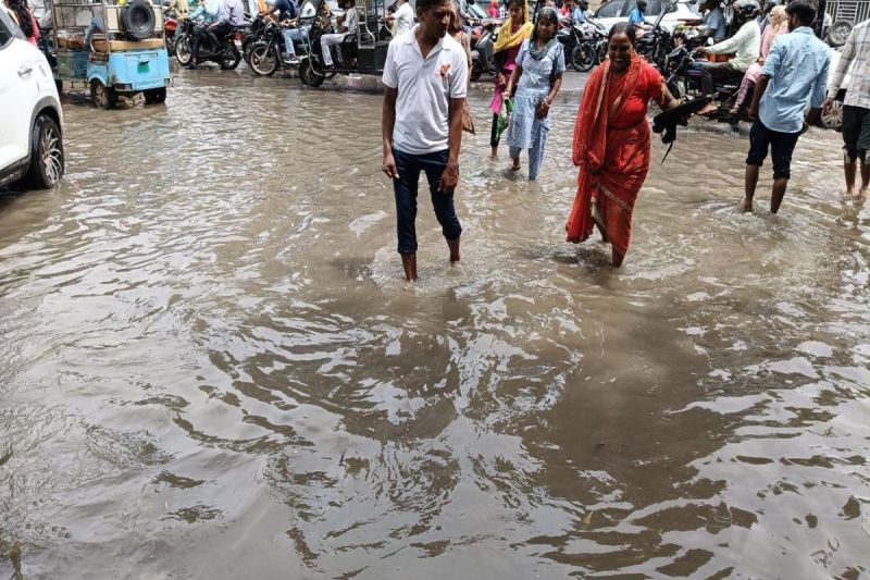 अलवर शहर में सोमवार को हुई झमाझम बारिश से जनजीवन प्रभावित हो गया। बारिश के बाद कई इलाकों की सड़कों पर पानी भर गया, जिससे राहगीरों और वाहन चालकों को दिक्कतों का सामना करना पड़ा। शहर के मुख्य बाजार, आवासीय कॉलोनियों और प्रमुख सड़कों पर बारिश का पानी भर जाने से यातायात धीमा हो गया।