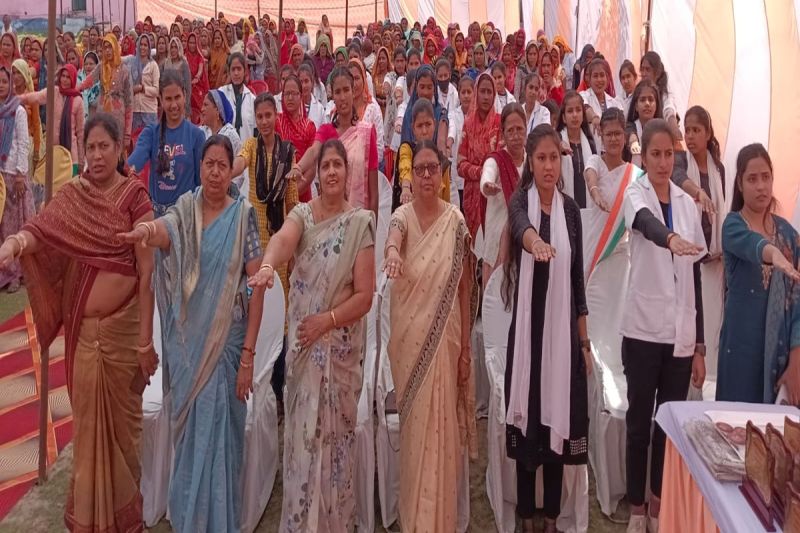महिला सशक्तीकरण की शपथ लेतीं महिलाएं।