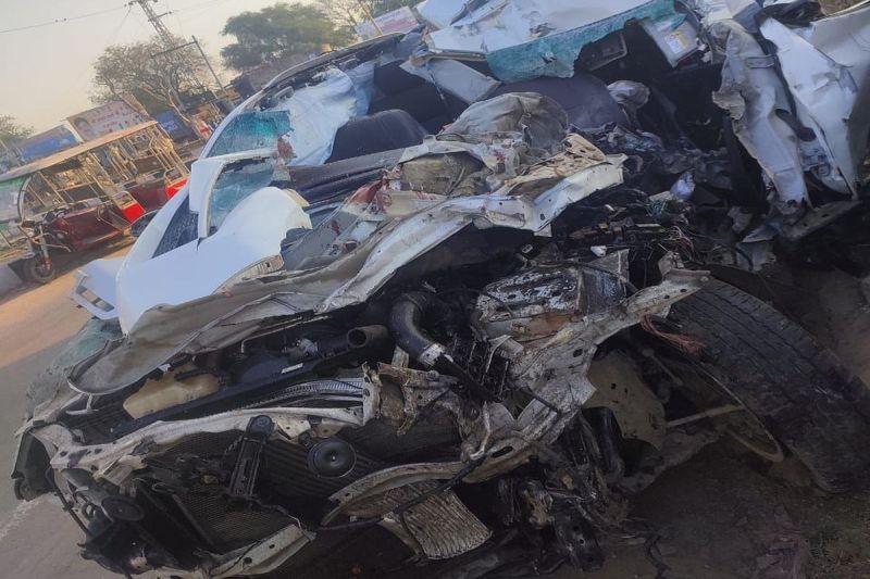 दुर्घटना इतनी भीषण हुई कि गाड़ी पूरी तरह छतिग्रस्त हो गई