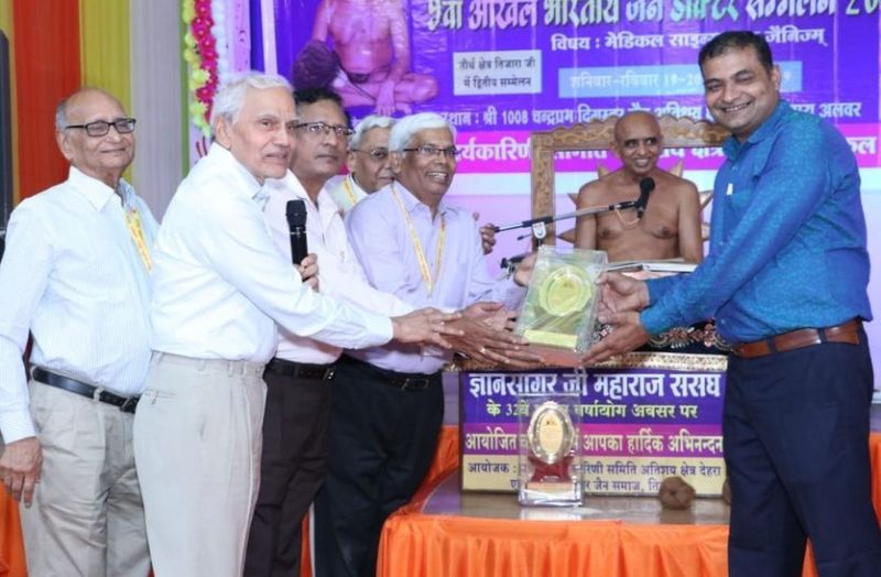 अलवर. तिजारा में आचार्य ज्ञानसागर महाराज के नेतृत्व में नवम् अखिल भारतीय डॉक्टर्स सम्मेलन में शाकाहार के महत्व को बताया गया। इस अवसर पर शाकाहार के समर्थन में प्रचार करने का निर्णय लिया गया। इसमें डॉ. डीसी जैन ने कहा कि आज के समय में ऐसी बीमारियों का प्रकोप बढ़ता जा रहा है। दिन-प्रतिदिन 40 वर्ष से ऊपर के लोगों में हर पांच व्यक्तियों में से एक व्यक्ति इनसे ग्रसित है। इन रोगियों की संख्या दिन-प्रतिदिन बढऩे से मानसिक तनाव, आर्थिक एवं पारिवारिक समस्याएं भी दिन-प्रतिदिन बढ़ती जा रही हैं। सम्मेलन में उपस्थित डॉक्टरों और अन्य लोगों ने इन सभी चीजों के लिए जनमानस में जागरूकता लाने का संकल्प लेकर एक स्वस्थ भारत निर्माण का संकल्प लिया।डॉ. संजय अग्रवाल ने यूरिन इन्फेक्शन से बचने के लिए हर दो-दो घंटे में ज्यादा से ज्यादा पानी पीने और नमक कम खाने की सलाह दी। डॉ. सिद्धार्थ जैन ने कहा कि आज हर व्यक्ति पेट की समस्याओं से ग्रसित है, जो गलत खानपान और गलत जीवन शैली का परिणाम है। डॉ. वैभव जैन ने कहा कि बोन हेल्थ के लिए दूध, फ ल व सब्जियां अधिक मात्रा में लेनी चाहिएं। इससे विटामिन और कैल्शियम की पूर्ति होती है। डॉ. कल्याण गंगवाल ने कहा कि शाकाहार में पिछले 35 वर्षों से कार्य कर रहा हूं, लाखों लोगों को शाकाहारी बनाया है। डॉ. एससी जैन जयपुर ने आभार जताया। डॉ. अमित जैन ने कहा कि आज बच्चे फ ल-सब्जियां नहीं खाते, जिससे बच्चों में अनेक तरह की परेशानी हो जाती है। आचार्य ने कहा कि जीवन को महान बनाने के लिए सुसंस्कार आवश्यक हैं। यह वह देश है, जिसने हमें अनेक निधियां प्रदान की हैं। क्षेत्र कमेटी अध्यक्ष पवन जैन, बाबूलाल जैन, अंकुश जैन, प्रेमसागर जैन, संजय बजाज, संजय रोलिया, विजय जैन, मनोज जैन, मनोज जैन कांधला, नीरज जैन व गोलू जैन आदि को सम्मानित किया गया। सम्मेलन में देश भर से करीब 200 डॉक्टरों ने भाग लिया। मंच संचालन डॉॅ.़ वैभव जैन तिजारा ने किया ।