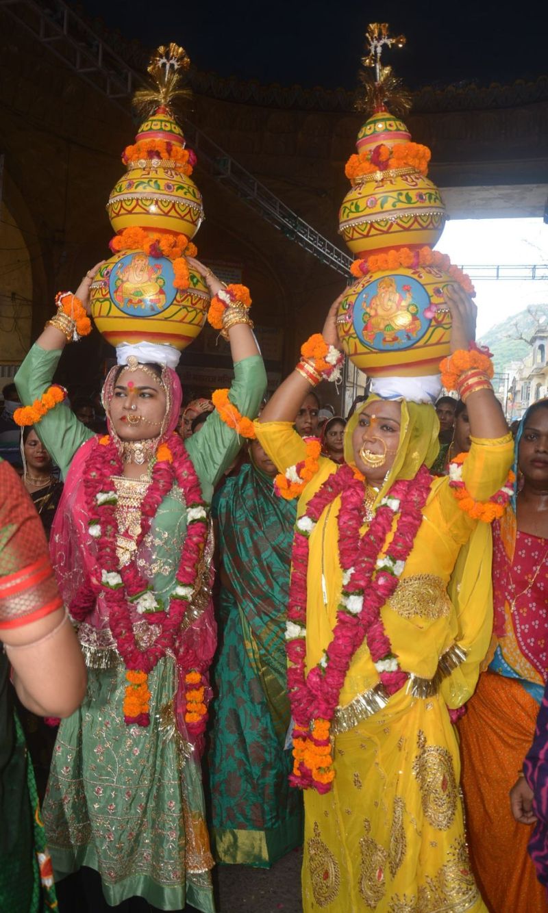 अलवर. शहर में आयोजित किए जा रहे किन्नर सम्मेलन में शनिवार को शहनाई वादन की मंगल ध्वनियों के बीच बैंडबाजे से कलश यात्रा निकाली गई। कलश यात्रा मंगल परिणय से अलवर प्रमुख राखी बाई व शब्बीर भाई के नेतृत्व में रवाना हुई, जो कि मन्नी का बड से मनु मार्ग, राम मंदिर, त्रिपोलिया व होपसर्कस से होती हुई वापस कार्यक्रम स्थल पर पहुंची। अशोका टाकीज राम मंदिर से दो कलश सिर पर रखकर किन्नर आगे चल रहे थे, कलश यात्रा में बैंडबाजे, ताशे, ढोल की धुन पर नाचते गाते हुए चल रहे थे। इसमें देश भर से आए किन्नर शामिल थे। कलश यात्रा का मार्ग में फूल माला पहनाकर और मिठाई खिलाकर सम्मान किया गया। रास्ते में लोगों ने किन्नरों का आशी्र्वाद भी लिया। शाम को अखंड ज्योत के समक्ष भगवान को मीठे चावल का भोग लगाया गया । रात्रि में गजल गायन आदि कार्यक्रम हुए।