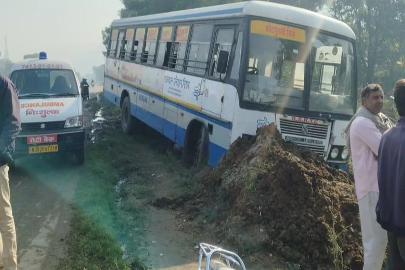 गुरुवार सुबह कोटपूतली-वाया बानसूर-अलवर मार्ग पर एक बड़ा हादसा टल गया। जानकारी के अनुसार करीब सुबह 8:30 बजे अलवर से बानसूर की ओर जा रही एक रोडवेज बस और एक लोक परिवहन बस तेज रफ्तार में ओवरटेक करने की कोशिश में हमीरपुर के पास सड़क से नीचे उतरकर मिट्टी में जा फंसी।