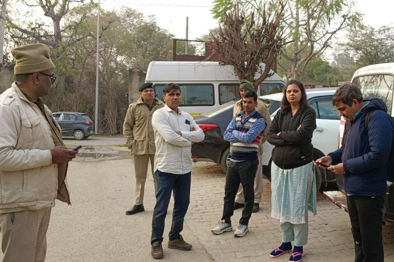कोटकासिम में मोर्चरी के बाहर मौजूद