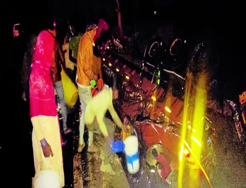 सरसों तेल का टैंकर पलटा, बाल्टी लेकर पहुंचे लोग