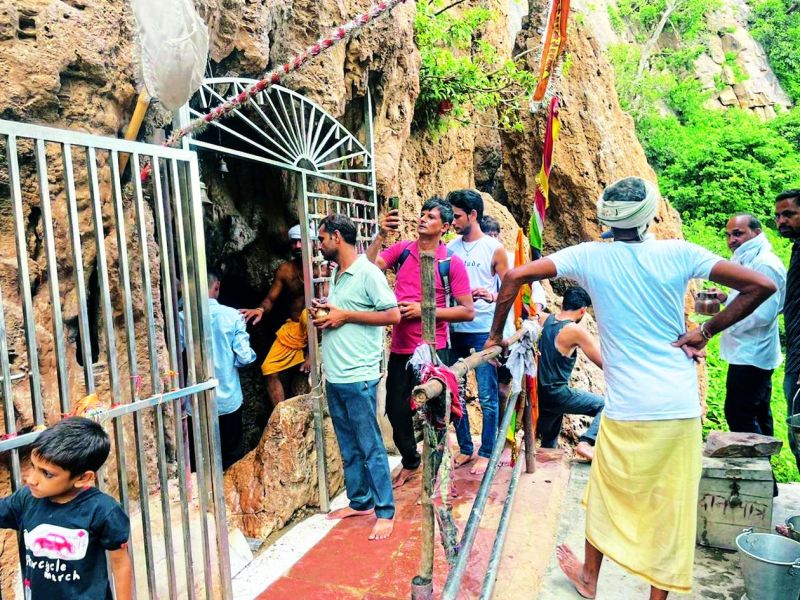 नलदेश्वर मंदिर के बाहर लगी भक्तों की कतार।