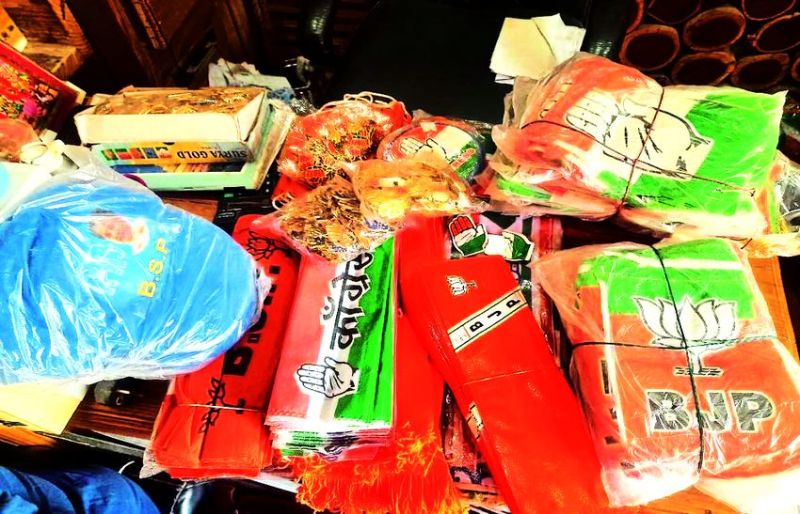 पहले सिलाई कर बनाए जाते थे झंडे अब रेडीमेड बिक रहे : दुकानदार विशाल गांधी ने बताया कि पहले पार्टी के लिए रेडीमेड सामान नहीं आता था, कपड़े लेकर झंडे बनाए जाते थे, झंडे और टोपियां तैयार करवाई जाती थी और बाद में पेंटर इन पर रंग करता था लेकिन अब ज्यादातर सामान मशीनों से तैयार होता है। इससे जरूरतमंद लोगों को सिलाई से रोजगार भी मिलता था। अब रैली व सभाओं से पहले प्रचार सामग्री की खूब बिक्री होती है। इसलिए चुनाव से पहले अतिरिक्त स्टॉक मंगवाया है।