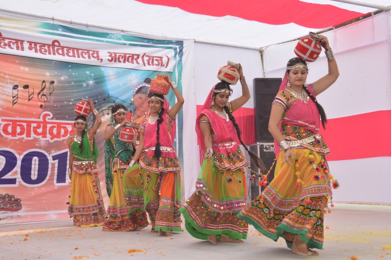 अलवर. गौरी देवी राजकीय महविद्यालय में गुरुवार को नूपुर 2018 के दिन एकल गायन सुगम , विचित्र वेशभूषा , समूह गान एवं समूह नृत्य प्रतियोगिता का आयोजन किया गया।