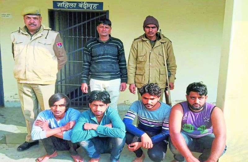 थानाधिकारी निरंजनपाल सिंह ने बताया कि मंगलवार को मुखबिर की सूचना के आधार पर उलाहेड़ी गांव के बस स्टैंड पर स्थित पेट्रोल पम्प पर लूट की योजना बनाते गांव मोहनपुर थाना नांगल चौधरी(हरियाणा) निवासी चार बदमाश दीपक कुमार पुत्र उम्मेद सिंह जाट, संजय पुत्र शिवलाल जाट, विष्णु पुत्र छोटेलाल जाट व सोनू पुत्र घासीराम जाट को गिरफ्तार किया है जबकि इनका एक साथी सरसों की खड़ी फ सल का फ ायदा उठाकर फ रार हो गया।