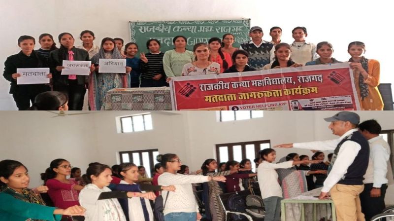 कस्बे के राजकीय कन्या महाविद्यालय, राजगढ़ में 'स्वीप' कार्यक्रम के तहत सोमवार को मतदाता जागरूकता सम्बंधी प्रश्नोत्तरी प्रतियोगिता का आयोजन प्राचार्य डॉ. के.एल. मीना की अध्यक्षता में सम्पन्न हुआ। इसमें छात्राओं के आठ समूहों कल्पना चावला, इंदिरा गांधी, मदर टेरेसा. पन्ना धाय, सावित्री बाई फुले, काली बाई, लक्ष्मीबाई एवं सुनीता विलियम्स ने हिस्सा लिया।