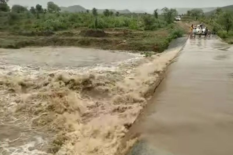 ग्राम जोधावास में बारिश के बाद रूपारेल नदी