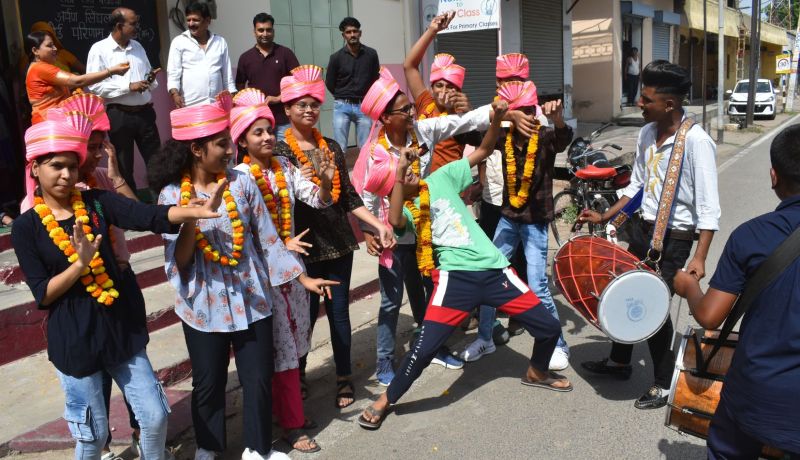 खुशी मनाते विद्यार्थी