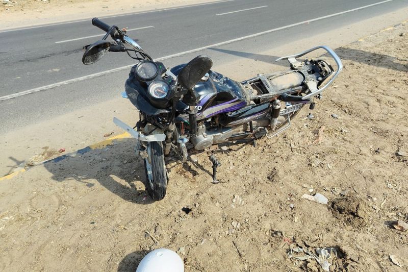 किसी वाहन ने टक्कर मार दी। जिससे बाइक का अगला हिस्सा चकनाचूर हो गया और हेलमेट के भी टुकड़े हो गए। शिक्षक हरिकिशन मीणा की मौके पर ही मौत हो गई।