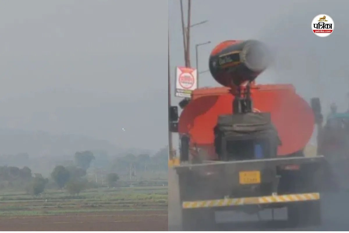 अलवर एनसीआर में पानी का छिड़काव करती एंटी स्मॉग गन, पत्रिका फोटो