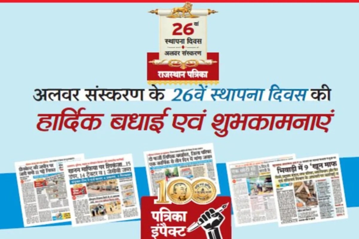 निष्पक्ष पत्रकारिता और जन-सरोकारों के प्रतीक 'राजस्थान पत्रिका' के अलवर संस्करण ने आज अपने सफर के 26 गौरवशाली वर्ष पूरे कर लिए हैं। इस खास अवसर पर पूरा जिला पत्रिका के रंग में रंगा नजर आया। कहीं रक्तदान शिविरों के जरिए जीवन बचाने का संकल्प लिया गया, तो कहीं रोशनी से जगमगाते 'होप सर्कस' ने शहरवासियों का मन मोह लिया।