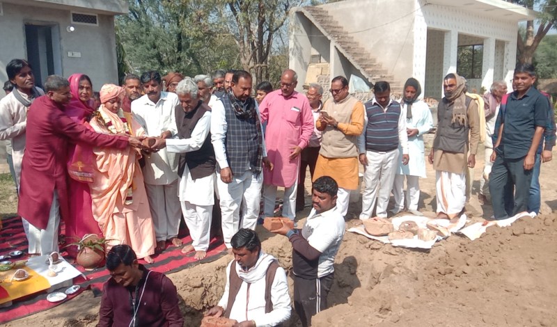 रामेश्वर धाम में राम व श्याम मन्दिर निर्माण कार्य की (नींव) आधारशिला शुभ मुहूर्त में विधिवत रखी गई।