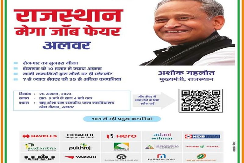 अलवर में 25 अगस्त को बाबू शोभाराम कला महाविद्यालय में एक दिवसीय 'मेगा जॉब फेयर', यानी रोजगार मेला लगने वाला है। इस रोजगार मेले में उम्मीदवार भाग लेकर रोजगार पा सकते हैं। उम्मीदवार क्यूआर कोड स्कैन कर अपना ऑनलाइन रजिस्ट्रेशन करा सकते हैं। इस मेले में नामी कंपनियां मौके पर ही प्लेसमेंट का ऑफर देंगी।