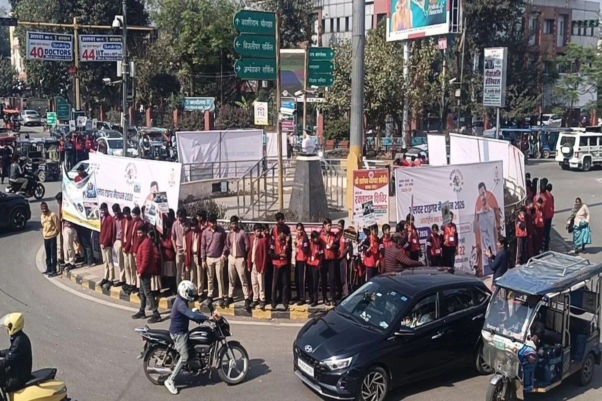 सड़क सुरक्षा माह के तहत अलवर शहर में स्कूली बच्चों की ओर से जन जागरूकता रैली निकाली गई। रैली का उद्देश्य आमजन को यातायात नियमों के प्रति जागरूक करना और सड़क दुर्घटनाओं को रोकने के लिए सुरक्षित व्यवहार अपनाने का संदेश देना रहा। उत्साह और अनुशासन के साथ निकली इस रैली ने राहगीरों का ध्यान अपनी ओर आकर्षित किया।