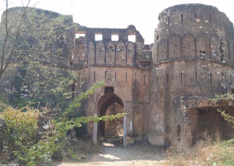 कस्बे के बुजुर्ग बताते हैं कि थानागाजी का किला उस समय छोटे स्वरूप में था। उसमें गाजी खां के साथ उसकी बटालियन रहती थी। 18वीं सदी में अलवर के पूर्व राजा राव प्रतापसिंह ने थानागाजी के किले का निर्माण कराया। अलवर-जयपुर मार्ग पर बने इस किले के चारों तरफ़ परकोटा है। जिसके कांकवाड़ी, दिल्ली और परसावाली तीन द्वार है। किले की सुरक्षा को लेकर चारों तरफ़ कच्ची खाई थी। अरावली पर्वतमाला और सरिस्का के पास होने से यह किला रणनीतिक दृष्टि से महत्वपूर्ण था।इतिहास के जानकारों अनुसार गाजी खां ने कस्बे की तहसील के पास पुराने थाने में अपना थाना बनाया था, इसी कारण वर्तमान थानागाजी काे गाजीकाथाना भी कहते हैं। गाजी खां ने किले में बारूद का भंडारण किया था। उसकी रखवाली को बटालियन के साथ रहता था। किले में टांके थे, जहां तोप के लिए गोले बनाए जाते थे। बारूद निकालते समय हुए धमाके से किला खंडहर भी हो गया था। 8 अक्टूबर 1920 के बाद से यह किला खंडहर ही है। कस्बे के पुराने बाज़ार के परसावाली दरवाजे के पास तुर्कियाली कुआं है। जानकारी के अनुसार सन् 1996 में पुरातत्व विभाग ने तुर्कियाली कुएं की ख़ुदाई कराई थी। दुहार चौगान निवासी 62 वर्षीय कैलाश बोहरा ने बताया कि इस कुएं में सैकड़ों मानव कंकाल, परसे और कुल्हाड़ी आदि हथियार बरामद किए थे।