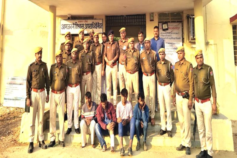 मामले में अन्तर्राज्यीय गिरोह के राजेश उर्फ पूटीया बंजारा (32) पुत्र धारया निवासी किशोरी थाना थानागाजी जिला अलवर, जावेद (52) पुत्र नूर मोहम्मद निवासी जामिया मिलिया इस्लामिया ओखला विहार दिल्ली, खजान बंजारा (40) पुत्र धारया बंजारा निवासी किशोरी थाना थानागाजी जिला अलवर व मुकेश बंजारा (19) पुत्र रंगड बंजारा निवासी किशोरी थानागाजी जिला अलवर को गिरफ्तार किया गया। इसमें मुकेश व राजेश का अपराधिक रिकार्ड भी सामने आया है।
